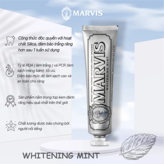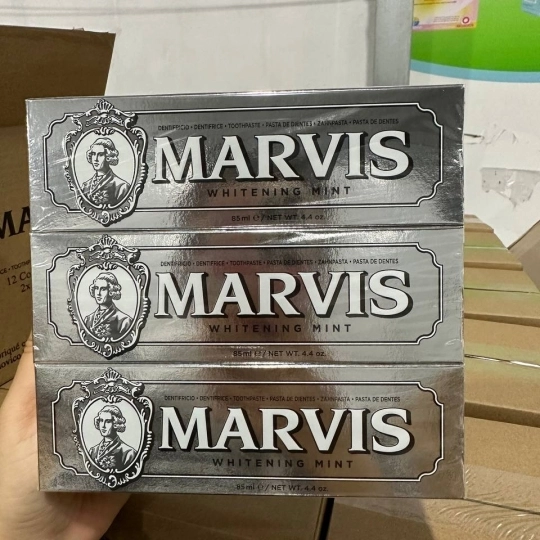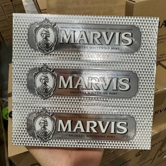 Kem Đánh Răng Marvis được nhập khẩu từ Florence, Italy. Là một thương hiệu nha khoa nỗi tiếng được yêu thích suốt nhiều thập kỷ. Marvis làm sạch khoang miệng, giúp răng trắng dần lên từng ngày, không làm tổn thương nướu và lợi còn làm răng thêm chắc khoẻ, hương thơm vô cùng độc đáo đem lại cho bạn hơi thở luôn thơm mát.
