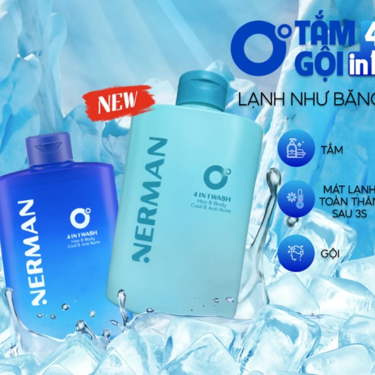 Sữa tắm, gội 0 Độ NERMAN: Tắm, gội, làm sạch 330ml